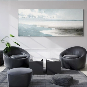 Quadro su vetro - Un mare calmo e una spiaggia dalle tonalità chiare di blu - 160x50cm - Marea dolce - Decorazione murale moderna per soggiorno e camera da letto ARTTOR