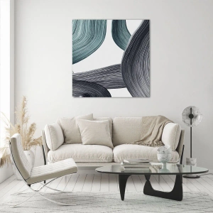 Quadro su vetro - Tracce smeraldo e nero - 40x40 cm