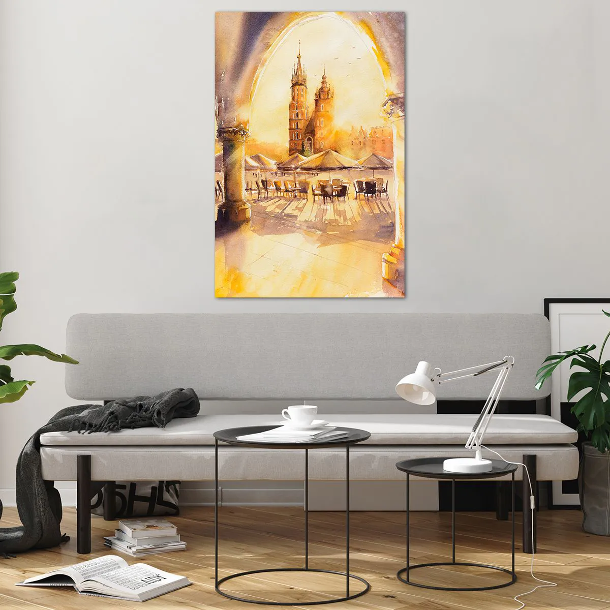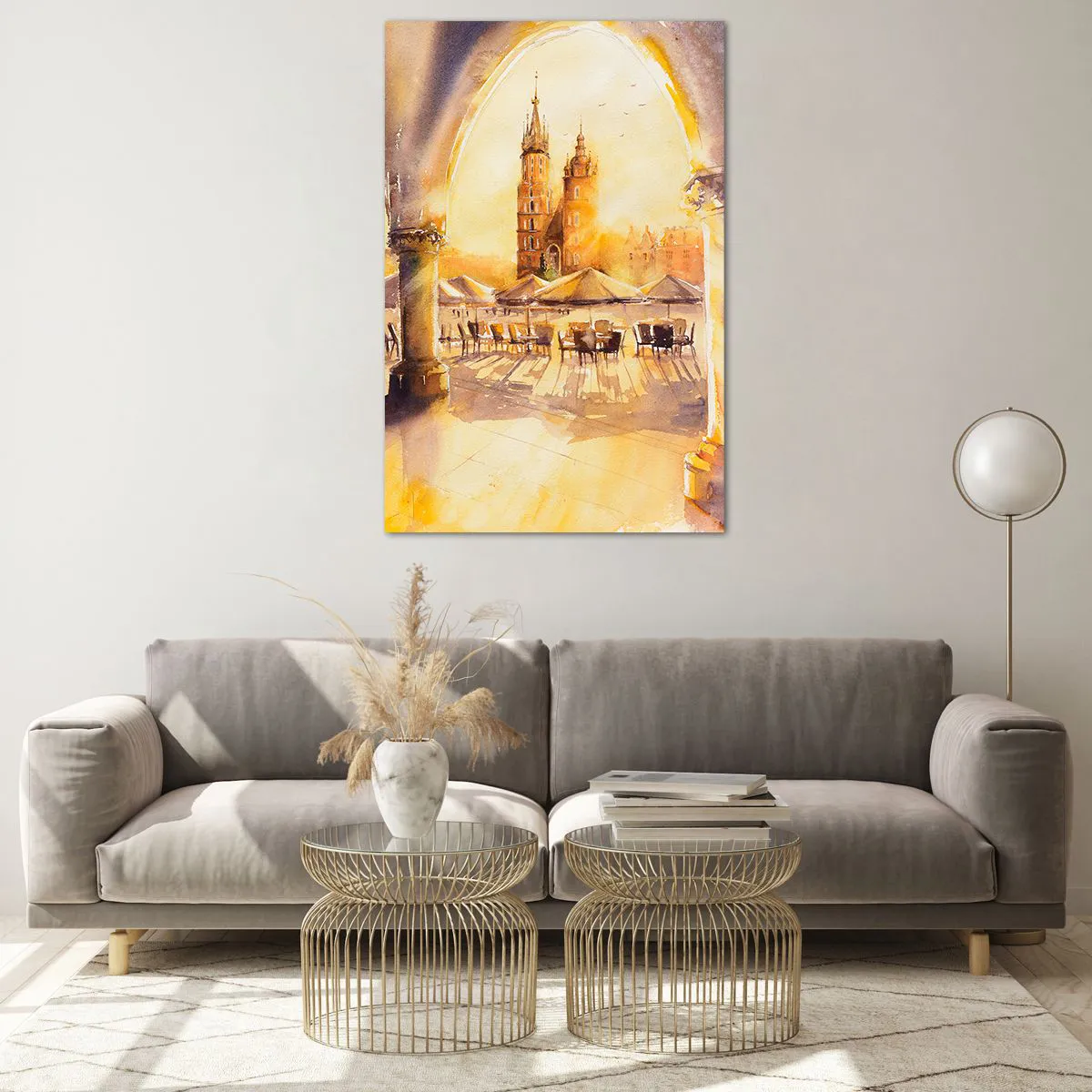 Quadro su vetro - Alba sulla piazza di Cracovia - 80x120 cm