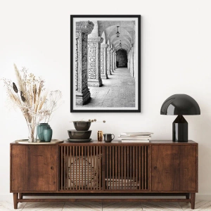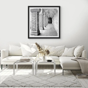 Poster in cornice nera - Colonne storiche in uno scatto monocromatico - 70x50cm - Dove porterà? - Decorazione murale moderna per soggiorno e camera da letto ARTTOR
