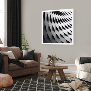 Poster - Motivo geometrico astratto nei toni del bianco e del nero - 100x70cm - Sulla cresta dell'onda - Decorazione murale moderna per soggiorno e camera da letto ARTTOR