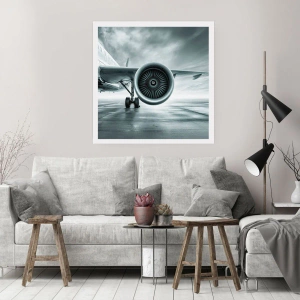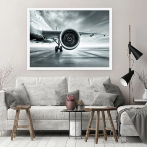 Poster - Un motore a reazione di aereo in toni monocromatici - 50x70cm - C'è la forza! - Decorazione murale moderna per soggiorno e camera da letto ARTTOR
