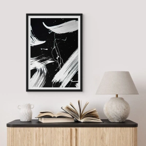 Poster in cornice nera - Tratti bianchi astratti su sfondo nero - 100x70cm - Spezzando l'oscurità - Decorazione murale moderna per soggiorno e camera da letto ARTTOR