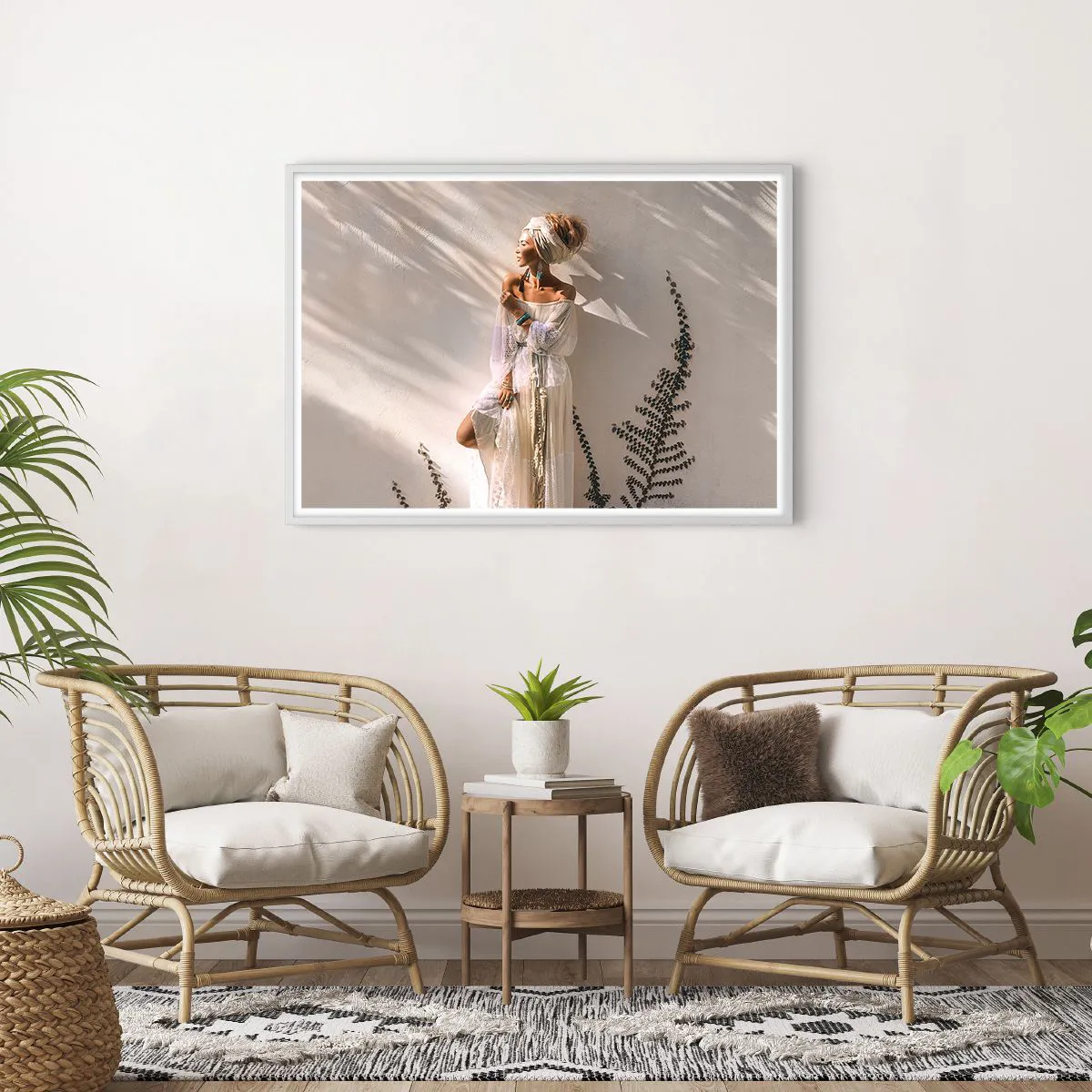 Poster in cornice bianca - Il sole e la ragazza - 100x70 cm