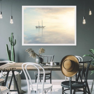 Poster - Una nave su un mare calmo con un dolce riflesso - 50x70cm - Silenzio in mare - Decorazione murale moderna per soggiorno e camera da letto ARTTOR