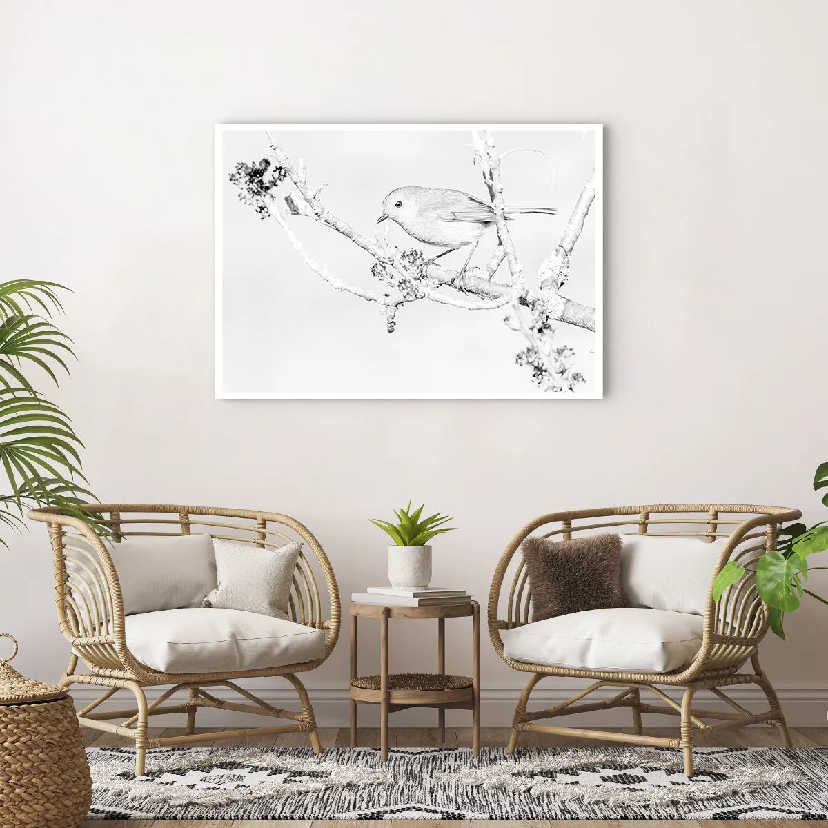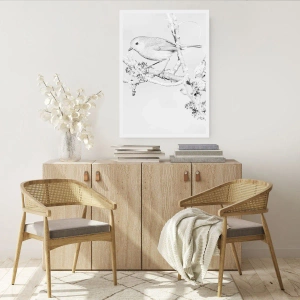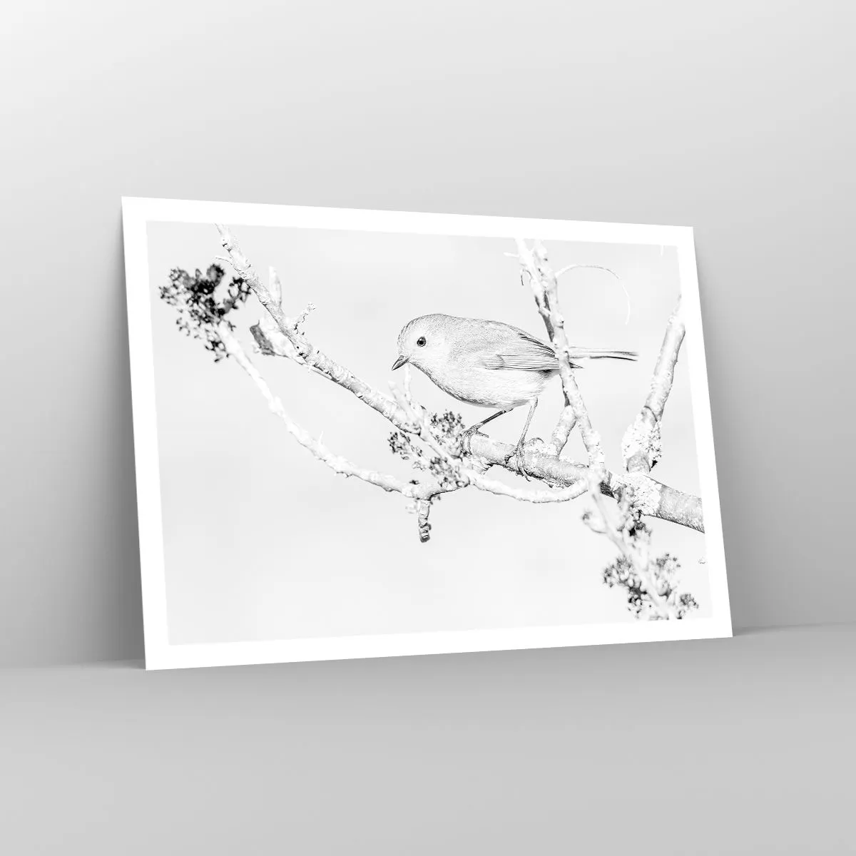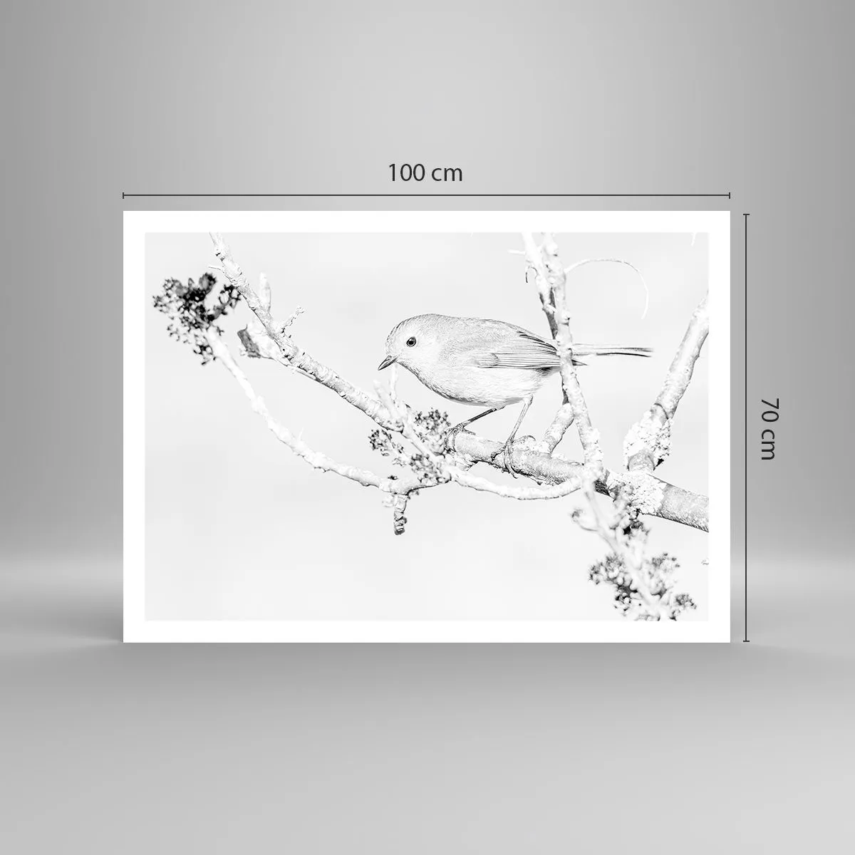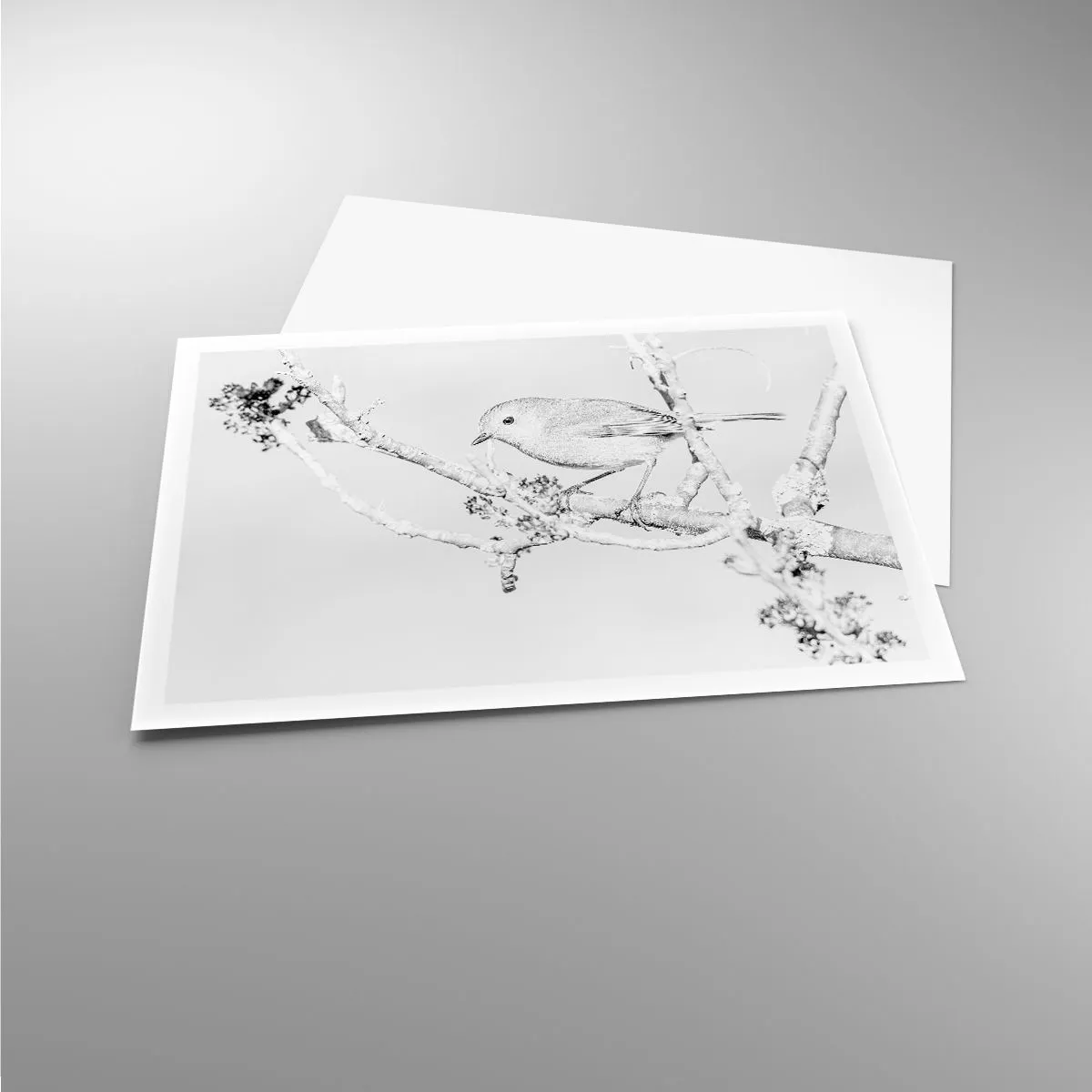Poster - Uccello su un ramo in bianco e nero con uno stile minimalista - 100x70cm - Mattino invernale - Decorazione murale moderna per soggiorno e camera da letto ARTTOR