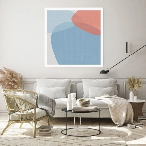 Poster - Una composizione astratta nei toni pastello del blu e del rosa con forme organiche. - 100x70cm - Legami pastello - Decorazione murale moderna per soggiorno e camera da letto ARTTOR