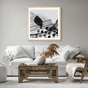 Poster in cornice rovere chiaro - Astrazione organica in bianco e nero - 50x70 cm