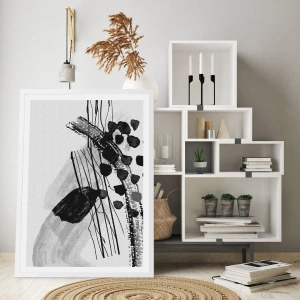 Poster in cornice bianca - Astrazione organica in bianco e nero - 60x60 cm