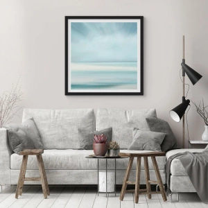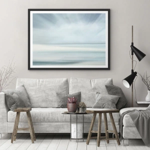 Poster in cornice nera - Sottile astrazione nelle tonalità del blu e del bianco - 50x70cm - Pace fino all'orizzonte - Decorazione murale moderna per soggiorno e camera da letto ARTTOR