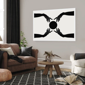 Poster - Grafica in bianco e nero di una mano con una palla - 50x70cm - Segno misterioso - Decorazione murale moderna per soggiorno e camera da letto ARTTOR