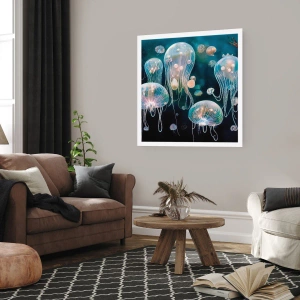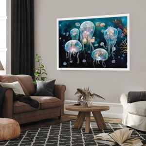 Poster - Delicate meduse nel mondo sottomarino - 100x70cm - Danza sottomarina - Decorazione murale moderna per soggiorno e camera da letto ARTTOR