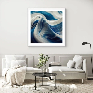 Poster in cornice bianca - Fluidità di blu e di bianco - 61x91 cm