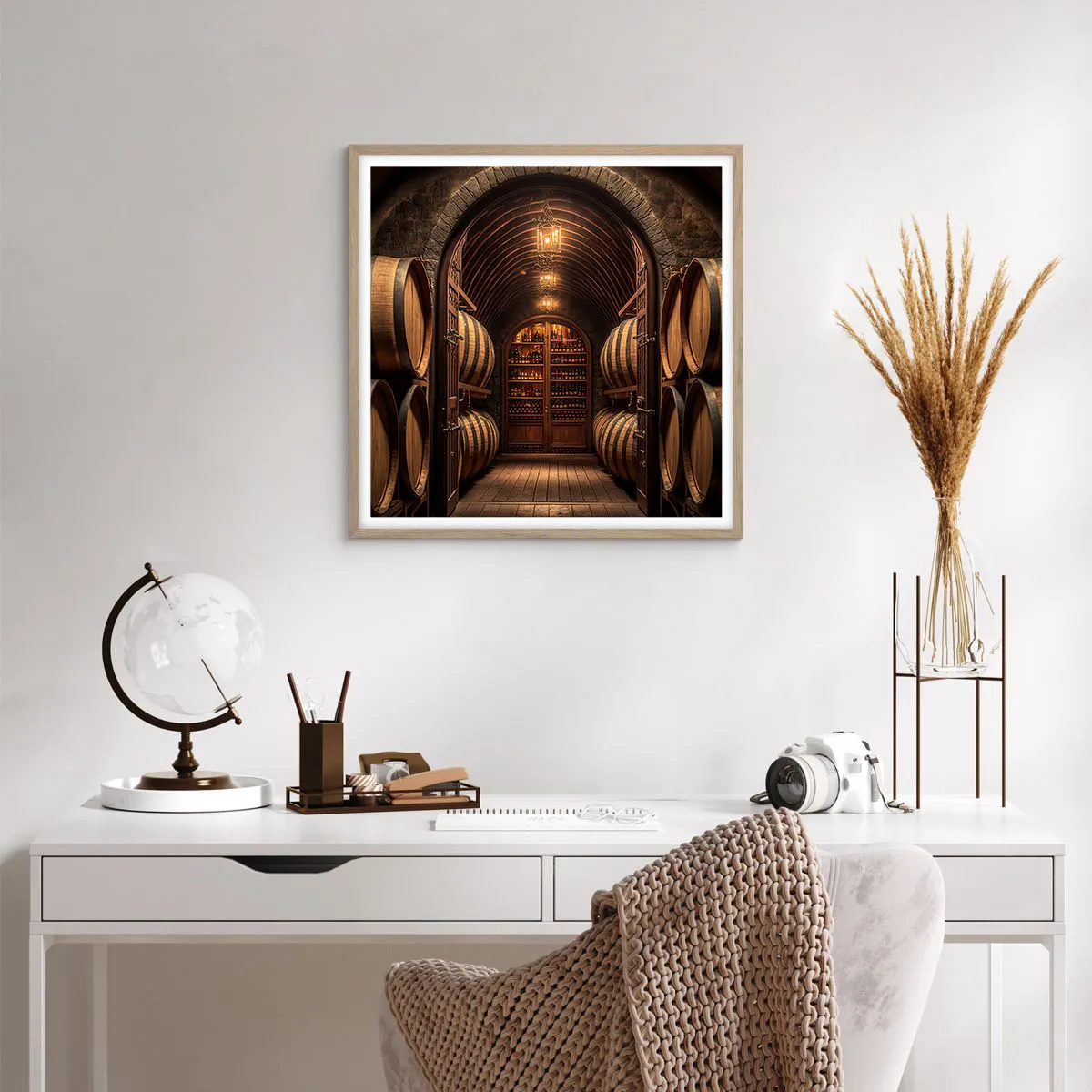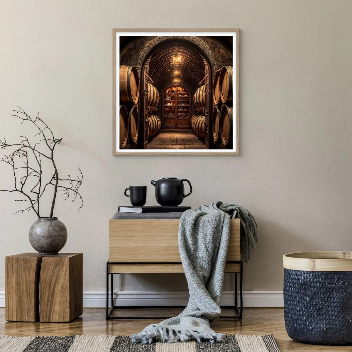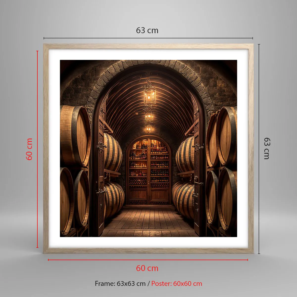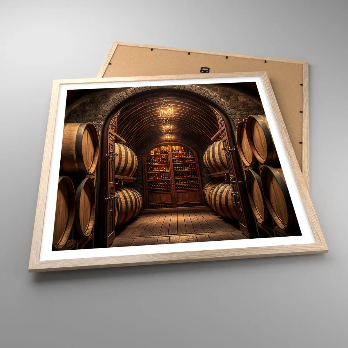 Poster in cornice rovere chiaro - L'atmosfera della cantina - 60x60 cm