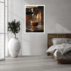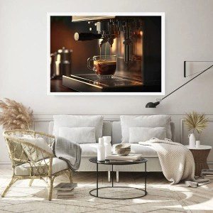 Poster - Macchina da caffè con una tazza di espresso aromatico - 100x70cm - Miscela sensuale - Decorazione murale moderna per soggiorno e camera da letto ARTTOR