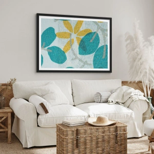 Poster in cornice nera - Tra le foglie azzurre - 61x91 cm