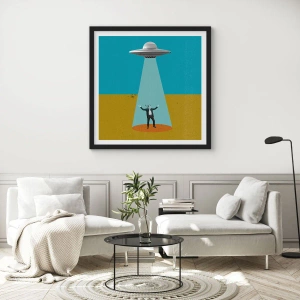 Poster in cornice nera - Illustrazione retrò di un rapimento UFO - 50x70cm - Incontro ravvicinato - Decorazione murale moderna per soggiorno e camera da letto ARTTOR