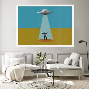 Poster - Un uomo alla luce di un UFO sullo sfondo di un paesaggio colorato - 100x70cm - Incontro ravvicinato - Decorazione murale moderna per soggiorno e camera da letto ARTTOR