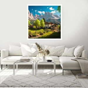Poster - Un villaggio di montagna ai piedi di maestose vette - 50x70cm - Idillio alpino - Decorazione murale moderna per soggiorno e camera da letto ARTTOR