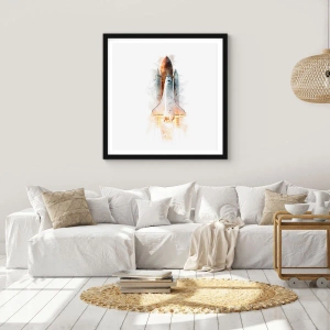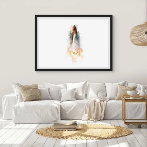 Poster in cornice nera - Navetta spaziale in stile acquerello che decolla - 50x70cm - La partenza degli esploratori - Decorazione murale moderna per soggiorno e camera da letto ARTTOR