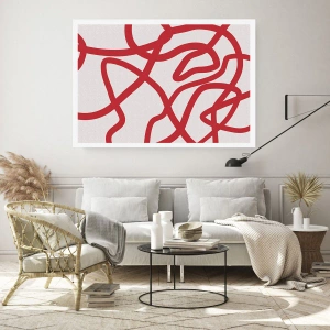 Poster - Linee astratte rosse su sfondo bianco - 100x70cm - Rosso su bianco - Decorazione murale moderna per soggiorno e camera da letto ARTTOR