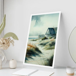 Poster - Una casa al mare circondata dal prato e con vista sul mare - 100x70cm - Lontano dal caos - Decorazione murale moderna per soggiorno e camera da letto ARTTOR