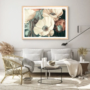 Poster in cornice rovere chiaro - Il sussurro dei papaveri - 40x40 cm