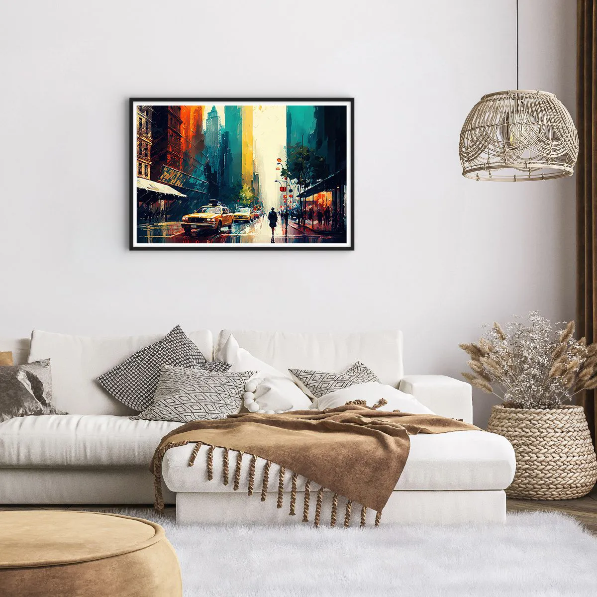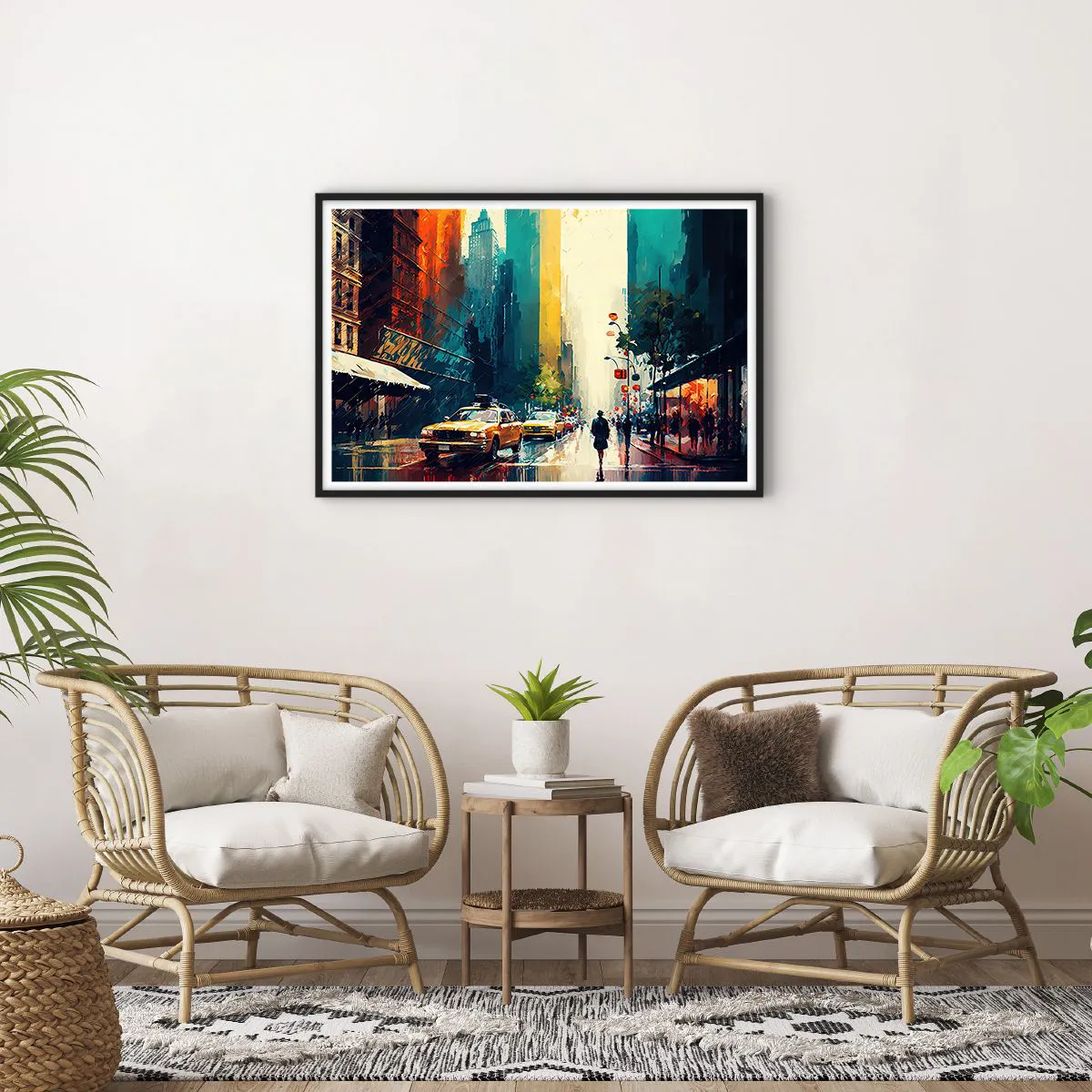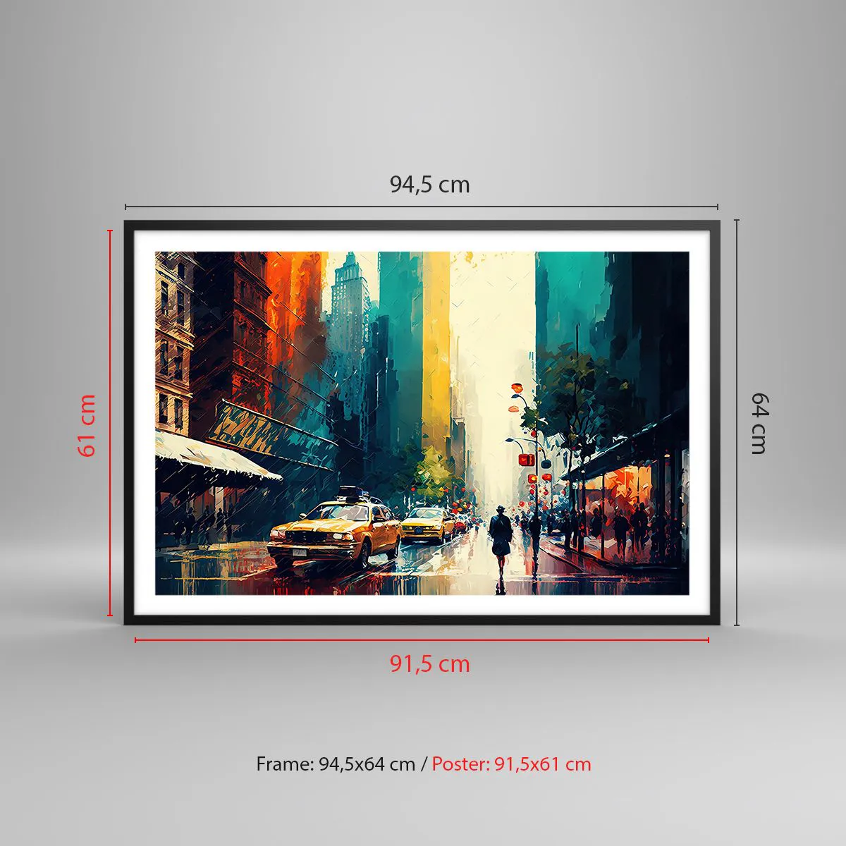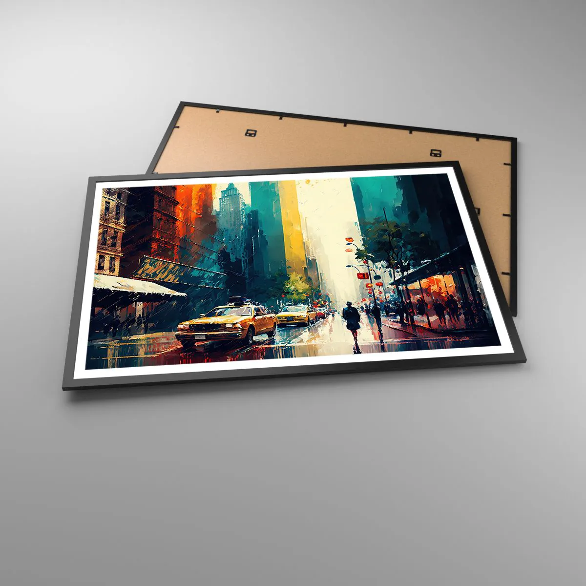 Poster in cornice nera - New York: qui anche la pioggia è colorata - 91x61 cm