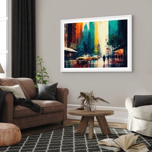 Poster in cornice bianca - New York: qui anche la pioggia è colorata - 30x40 cm