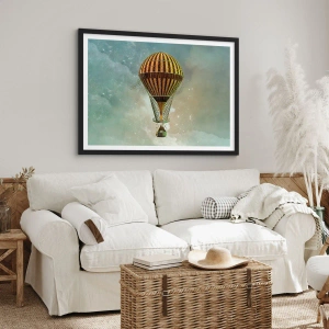 Poster in cornice nera - Una mongolfiera che fluttua tra le nuvole - 100x70cm - I voli dei pionieri - Decorazione murale moderna per soggiorno e camera da letto ARTTOR