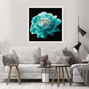 Poster - Fiore di peonia turchese su sfondo nero - 100x70cm - Petali blu e oro - Decorazione murale moderna per soggiorno e camera da letto ARTTOR