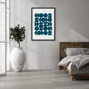 - Il poster presenta una composizione geometrica di cerchi e semicerchi blu. La sua disposizione simmetrica e l'estetica minimalista gli conferiscono un aspetto elegante e moderno, perfetto per gli interni contemporanei.