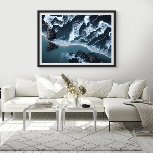 Poster in cornice nera - Vista aerea delle onde che si infrangono sulla riva - 70x50cm - Avvolte dalle onde - Decorazione murale moderna per soggiorno e camera da letto ARTTOR