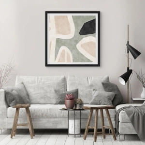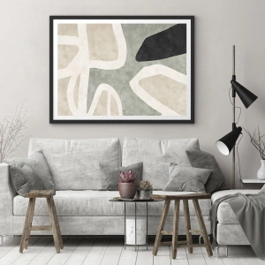 Poster in cornice nera - Forme astratte in colori tenui - 100x70cm - Composizione con motivi in nero - Decorazione murale moderna per soggiorno e camera da letto ARTTOR