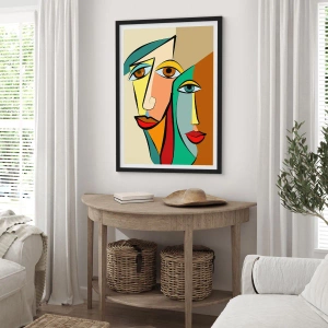 - Questo poster raffigura due volti astratti in stile cubista. Le forme geometriche e i colori caldi gli conferiscono un tocco artistico, rendendolo un'ottima scelta per gli interni moderni.