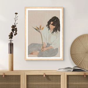 Poster in cornice rovere chiaro - Ritratto con fiore esotico - 30x40 cm