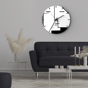 L'orologio è realizzato con vetro dello spessore di 4 mm. La tecnologia di realizzazione dell'orologio è conforme alla classe di resistenza 2B2 secondo la norma PN-EN 12600:2004, che garantisce resistenza agli urti. L'orologio su vetro è pronto per essere appeso: possiede un punto di sospensione metallico fissato sul retro dell'orologio e un distanziatore in schiuma che assicura la distanza uniforme dell'orologio dalla parete. L'orologio possiede un meccanismo silenzioso alimentato con una batteria da 1,5V, di tipo AA (la batteria non è inclusa nel completo).