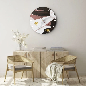 L'orologio ha un diametro di 30x30 cm ed è realizzato in vetro, che garantisce un'elegante lucentezza, resistenza e facilità di pulizia. L'orologio in vetro è la perfetta combinazione di estetica e praticità. La sua forma rotonda si armonizza con lo stile delicato delle illustrazioni e i sottili indici delle ore non interferiscono con il messaggio artistico.
