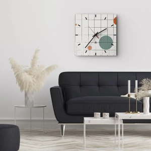 L'orologio è realizzato con vetro dello spessore di 4 mm. La tecnologia di realizzazione dell'orologio è conforme alla classe di resistenza 2B2 secondo la norma PN-EN 12600:2004, che garantisce resistenza agli urti. L'orologio su vetro è pronto per essere appeso: possiede un punto di sospensione metallico fissato sul retro dell'orologio e un distanziatore in schiuma che assicura la distanza uniforme dell'orologio dalla parete. L'orologio possiede un meccanismo silenzioso alimentato con una batteria da 1,5V, di tipo AA (la batteria non è inclusa nel completo).