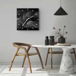 Orologio da parete - Orologio in Vetro - Linee bianche astratte su sfondo nero - 30x30cm - La danza della luce nello spazio - Decorazione murale moderna per soggiorno e camera da letto ARTTOR