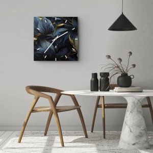 Orologio da parete - Orologio in Vetro - Fiori scuri con delicata decorazione dorata sui petali - 30x30cm - Foderati d'oro - Decorazione murale moderna per soggiorno, cucina e camera da letto ARTTOR
