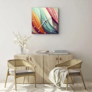 Orologio da parete - Orologio in Vetro - Onde colorate nelle tonalità dell'arancione, menta e rosa - 30x30cm - Intreccio arcobaleno - Decorazione murale moderna per soggiorno, cucina e camera da letto ARTTOR
