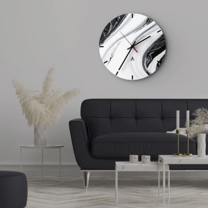 Orologio da parete - Orologio in Vetro - Linee astratte in bianco e nero creano un motivo fluido e contrastante. - 30x30cm - L'unione degli opposti - Decorazione murale moderna per soggiorno, cucina e camera da letto ARTTOR