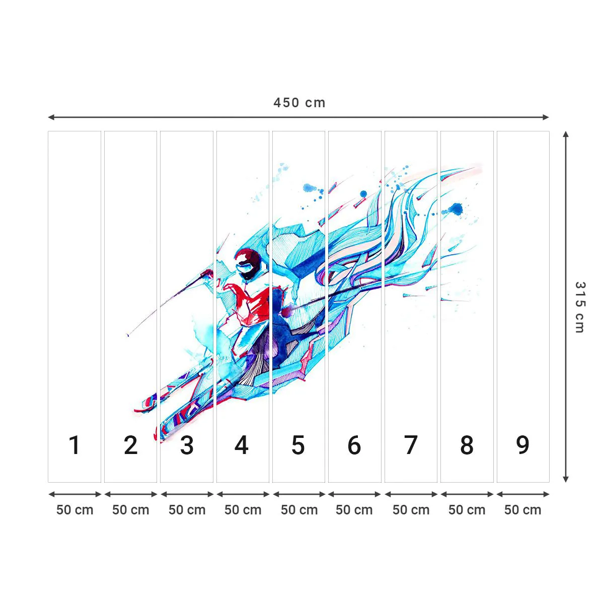 Fotomurali Premium Sand - A tutta velocità verso la gioia - Astrazione, Sci, Sciatore - 450x315 cm