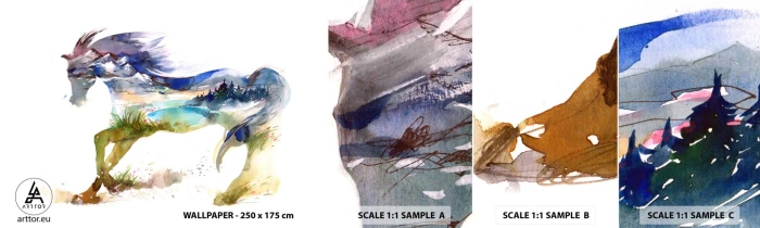 Campione Di Fotomurale Standard Eco - Direttamente dal prato al cielo - Cavallo, Astrazione, Paesaggio - 100x30 cm