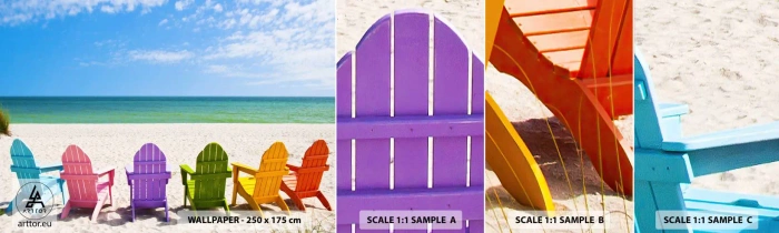 Campione Di Fotomurale Standard Eco - Spiaggia arcobaleno - Paesaggio, Spiaggia, Sedie a sdraio - 100x30 cm