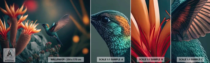 Campione Di Fotomurale Standard Eco - Una vita davvero a colori - Uccello, Esotico, Fiore - 100x30 cm