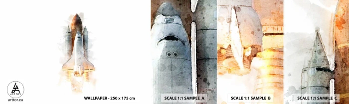 Campione Di Fotomurale Standard Eco - La partenza degli esploratori - Un razzo spaziale, Cosmo, Minimalismo - 100x30 cm