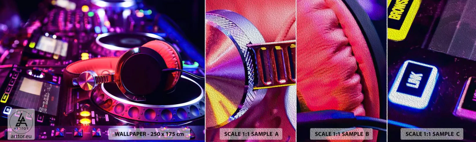 Campione di Fotomurale Premium Sand - Prima che inizi la festa - Musica, Studio musicale, Cuffie - 100x30 cm