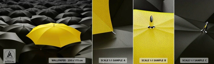 Campione di Fotomurale Premium Sand - Addio tristezza - Ombrelli gialli, Grafica, Concetto - 100x30 cm
